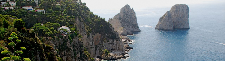 Capri is an island of many contrasts. For rushed daytrippers, it is a crowded maze of expensive boutiques. For celebrities and the ultra-rich, a point of rendezvous. For historians, it is the palace-island of the Emperor Tiberius, dotted with neglected Roman remains. Walkers can step out along scenic short walks. For leisurely holidaymakers, it can present all this and more, along with staggering views and blue, blue sea. It is a dream honeymoon destination.